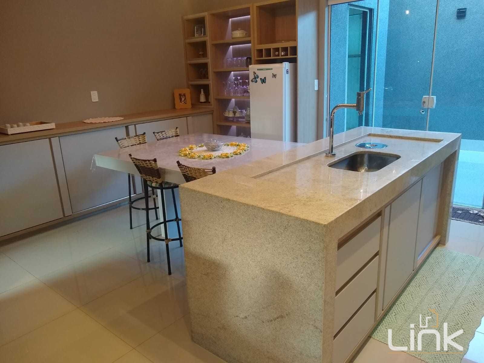 🍽️ Cozinha integrada à área gourmet, com ilha, mesa em granito, armários planejados, fogão, cooktop e coifa
